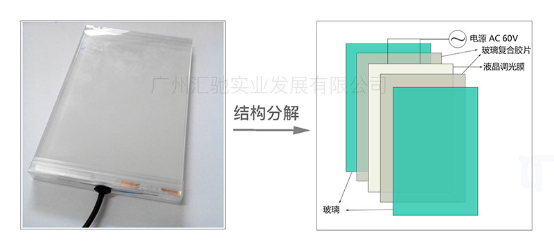 首先,我們對調光玻璃的結構組成要有一個概念。請看下圖,看一次看不懂的朋友可能要多花點時間和心思。