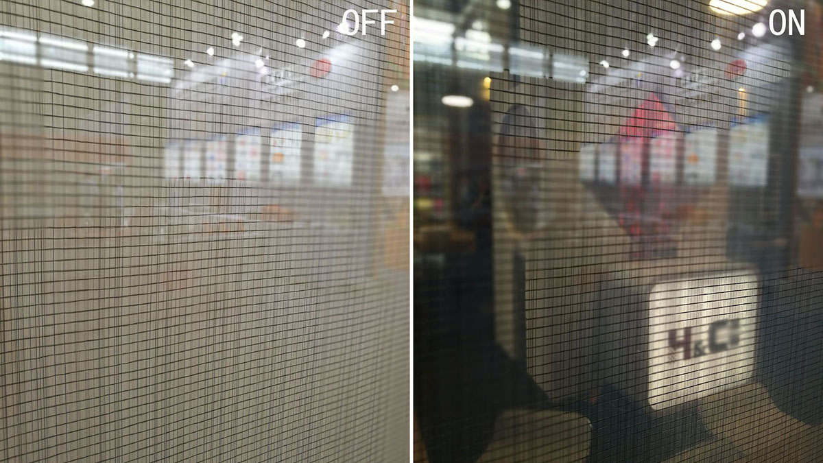 那么夾絲調光玻璃長什么樣?只要你見過夾絲玻璃和調光玻璃,那就不難想象出它是什么樣的,請看下圖效果。