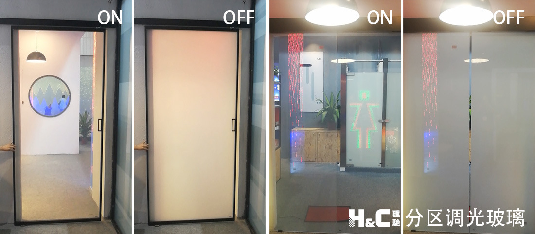 無設計,不定制。我們在普通調光玻璃的基礎上開發出了分區調光玻璃。這款玻璃的圖案可以由客戶自行設計定制,讓玻璃可以顯示透明或霧化的圖案和多樣的變化效果。目前我們是國內首家掌握分區調光玻璃技術的廠家,分區調光玻璃也是我們多年來深耕調光膜技術的成果,也充分展示了我們的研發實力。