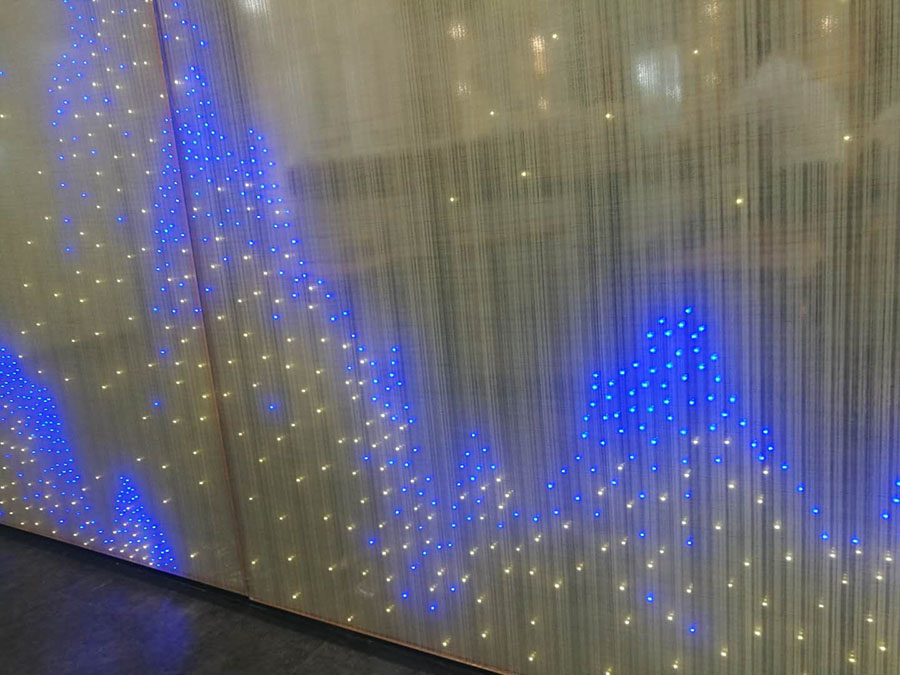 以玻璃為基礎,配合各種材料和先進工藝生產的LED發光玻璃,采用呼吸式發光控制,點綴空間,塑造氣氛,給人一種神秘感。