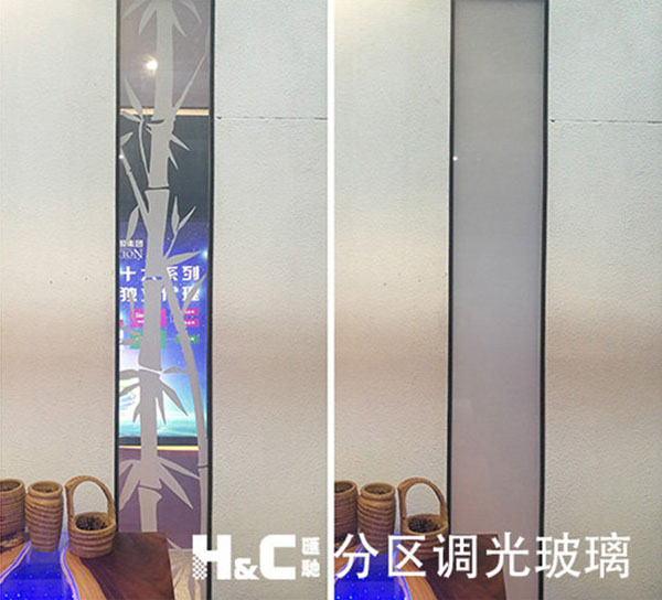匯馳公司可以定制分區(qū)型圖文調(diào)光玻璃,即玻璃上可以呈現(xiàn)出各種圖形、文字的變化效果,可固定呈現(xiàn),也可動態(tài)呈現(xiàn),用遙控就能輕松控制。只有調(diào)光膜生產(chǎn)廠家,才有能力生產(chǎn)分區(qū)型調(diào)光玻璃。